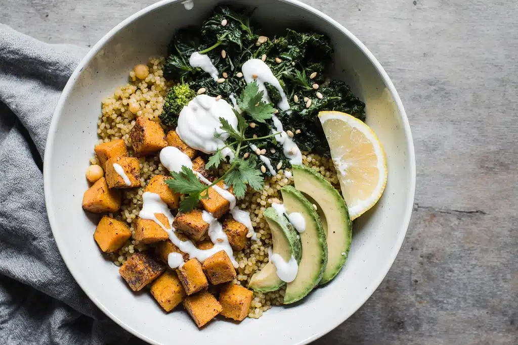 This recipe stands out for its anti-inflammatory power from turmeric, leafy greens, and healthy fats. High-fiber quinoa and fermented toppings boost gut health while antioxidants in sweet potatoes and avocado nourish skin from within. It offers plant-based protein, customizable options, and meal-prep ease for busy days.