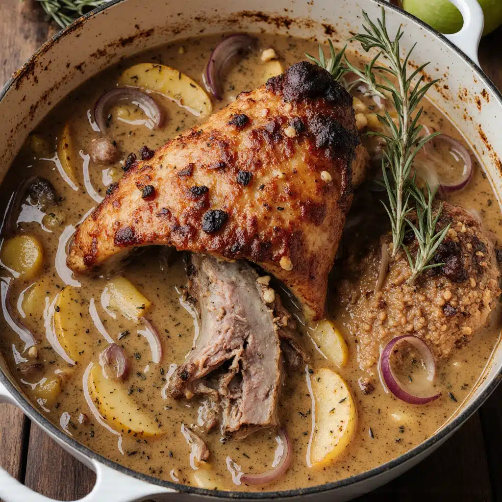 Apple Cider Braised Pork Shoulder is the ultimate one-pot dish that captures the essence of fall with every bite. This recipe transforms a simple pork shoulder into a succulent, flavorful dinner, combining the natural sweetness of fresh apple cider, the earthiness of onions and herbs, and the subtle tartness of firm apples. The result is a tender, melt-in-your-mouth pork roast that is perfect for family gatherings, holiday dinners, or cozy weeknight meals. The combination of slow cooking, aromatic herbs, and carefully selected ingredients ensures a complex and irresistible flavor that makes this dish unforgettable.