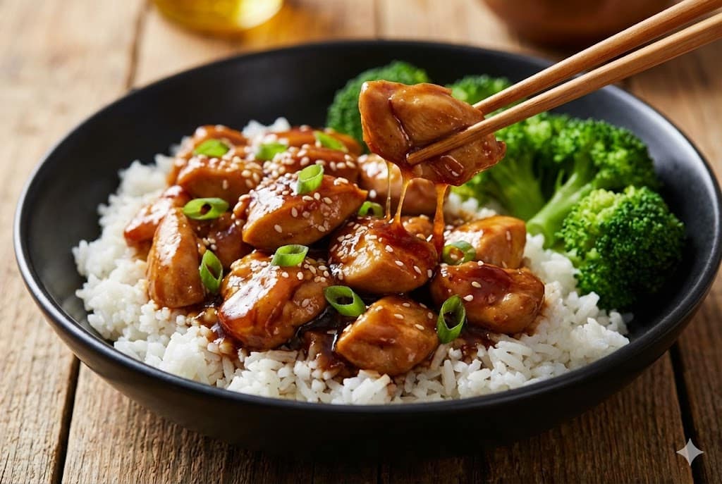 • Sticky, glossy sauce clings to tender chicken for irresistible takeout flavor at home.