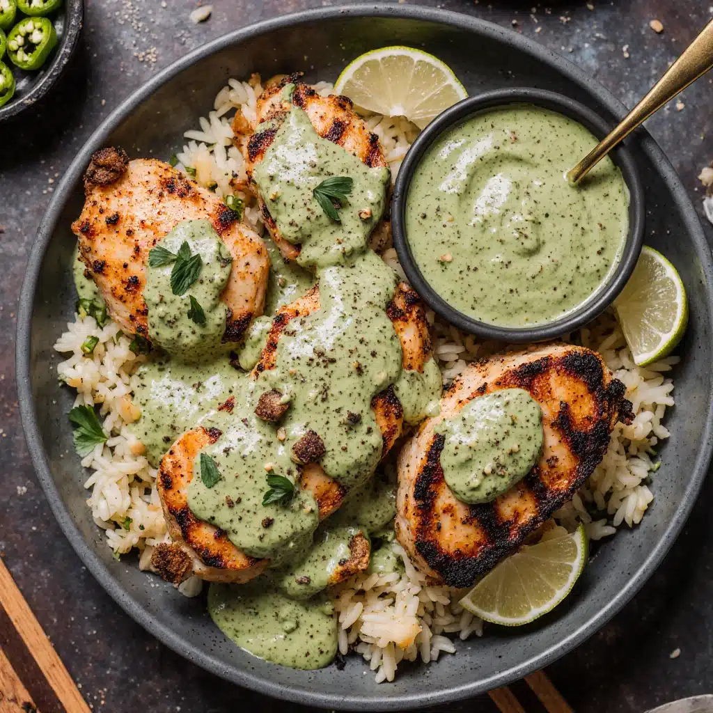 Peruvian Chicken with Creamy Green Sauce is packed with flavor and perfect for barbecues or weeknight dinners. Juicy chicken thighs are marinated in aromatic spices and served with a creamy, zesty cilantro sauce.