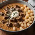 Cream or sour cream is added at the end, creating a velvety consistency that coats every bite. This method ensures the sauce remains smooth and balanced rather than heavy. The final dish is comforting, deeply savory, and unmistakably traditional.