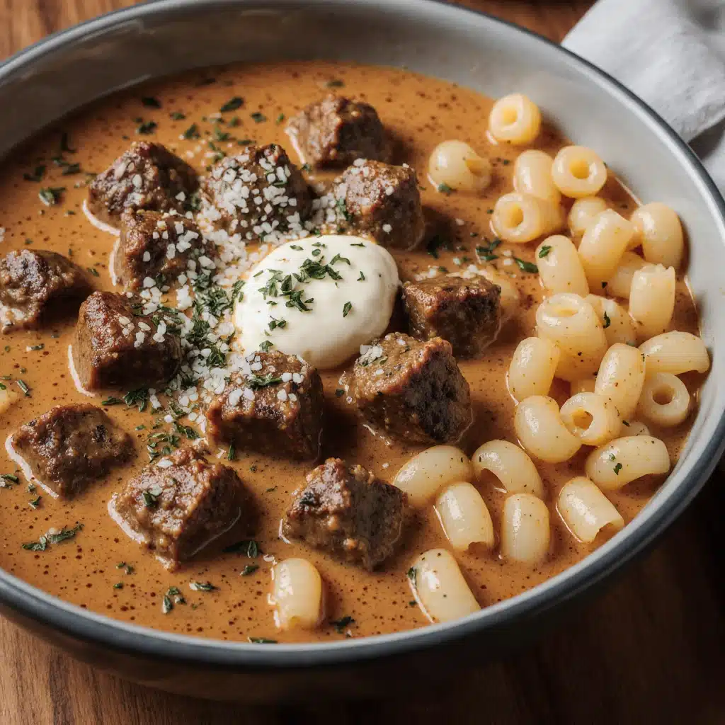 Cream or sour cream is added only after the meat is fully tender. This timing prevents curdling and preserves the sauce’s smooth texture. The cream softens the paprika’s warmth and rounds out the flavors, creating a luxurious mouthfeel without overpowering the stew.