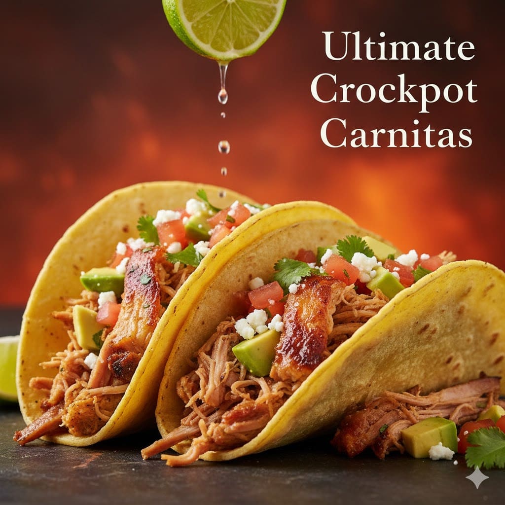 Ultimate Crockpot Carnitas delivers fall-apart tender pork shoulder with crispy edges, bursting with authentic Mexican flavors from a simple citrus-spice marinade. This dump-and-go slow cooker recipe takes just 5 minutes to prep, cooks hands-free for 8-10 hours, and finishes with a quick broil for that irresistible crunch perfect for tacos, burritos, or bowls.