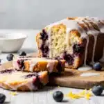 Yogurt and oil create an ultra-moist texture that stays fresh for days. Fresh or frozen blueberries work seamlessly, and a simple vanilla glaze adds just the right sweetness. Each slice bursts with fruit while keeping the loaf light and fluffy.​